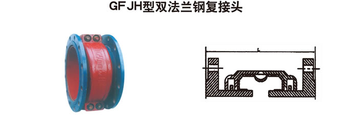 GFJH型雙法蘭鋼復接頭,具有一定的自由偏轉角度.有自行伸縮補償的功能.有良好的減震性能。自緊式密封防滲漏可靠。可廣泛用于水泵、泵與泵、泵與穿墻管,閥門、循環水管道以及其他各種管道的連接,替代波紋管、伸縮器等.使運行安全可靠.安裝維修方便。